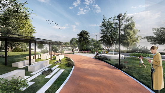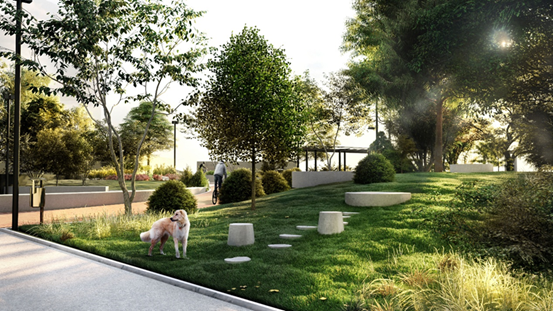 Καθαιρούνται τα χαμηλά τοιχία παρτεριών και ακολούθως προβλέπεται η τοποθέτηση μνημείου σε περίοπτη και αναλόγως διαμορφωμένη θέση. Τοποθέτηση σε όλη την έκταση του πάρκου καθιστικών για την ξεκούραση των περαστικών, εξοπλισμού άθλησης, μονοπατιών και αρωματικού κήπου. Πρόκειται να τοποθετηθεί νέος εξοπλισμός φωτισμού, νέος αθλητικός εξοπλισμός και αστικός εξοπλισμός με καθιστικά, μεταλλικές πέργολες, ηλιακά καθιστικά, βρύσες πόσιμου νερού και καλάθια μικροαπορριμμάτων.