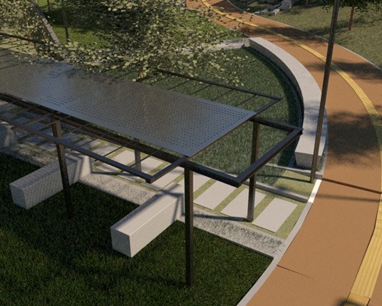 - Πλατεία μνημείου – Νέο τοπόσημο: Χωροθετείται στην βόρεια είσοδο του πάρκου και απευθύνεται σε όλες τις ηλικίες. Η διαμόρφωση του χώρου θα επιτρέπει τη χρήση του από όλους σε όλες τις ώρες της μέρας. Με τη δημιουργία καθιστικών, μονοπατιών και ελεύθερων διαμορφώσεων, οι επισκέπτες έχουν εναλλακτικές δυνατότητες οικειοποίησής του και θέας προς το μνημείο.
